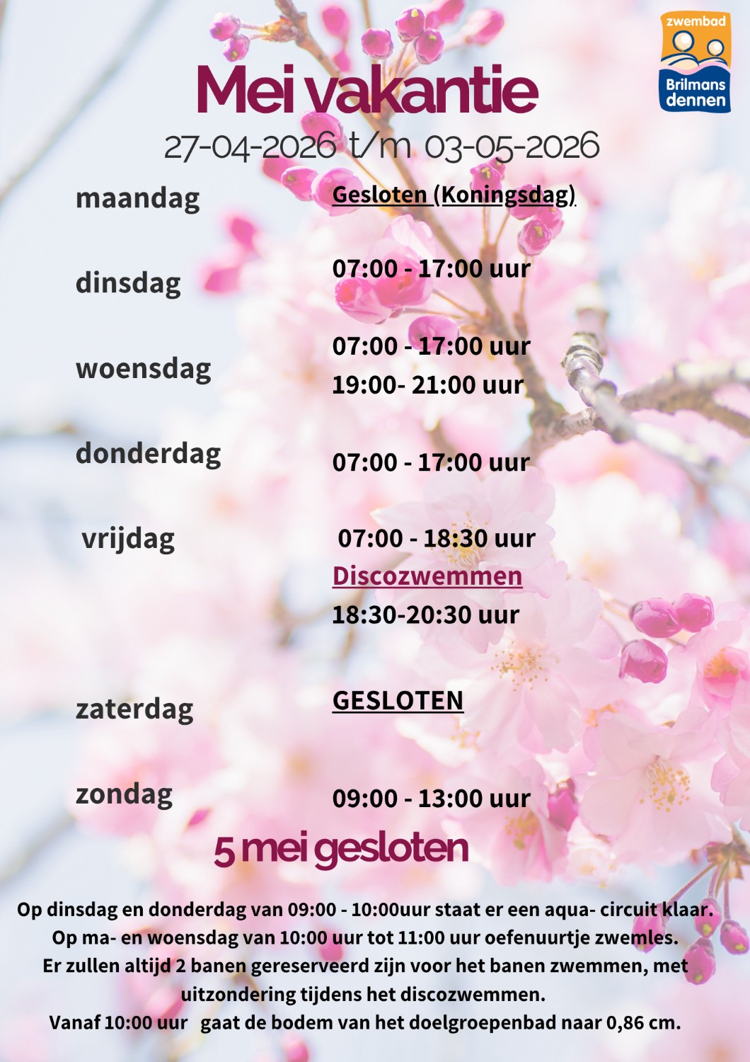 Openingstijden in de Meivakantie 27 april tot en met 3 mei.