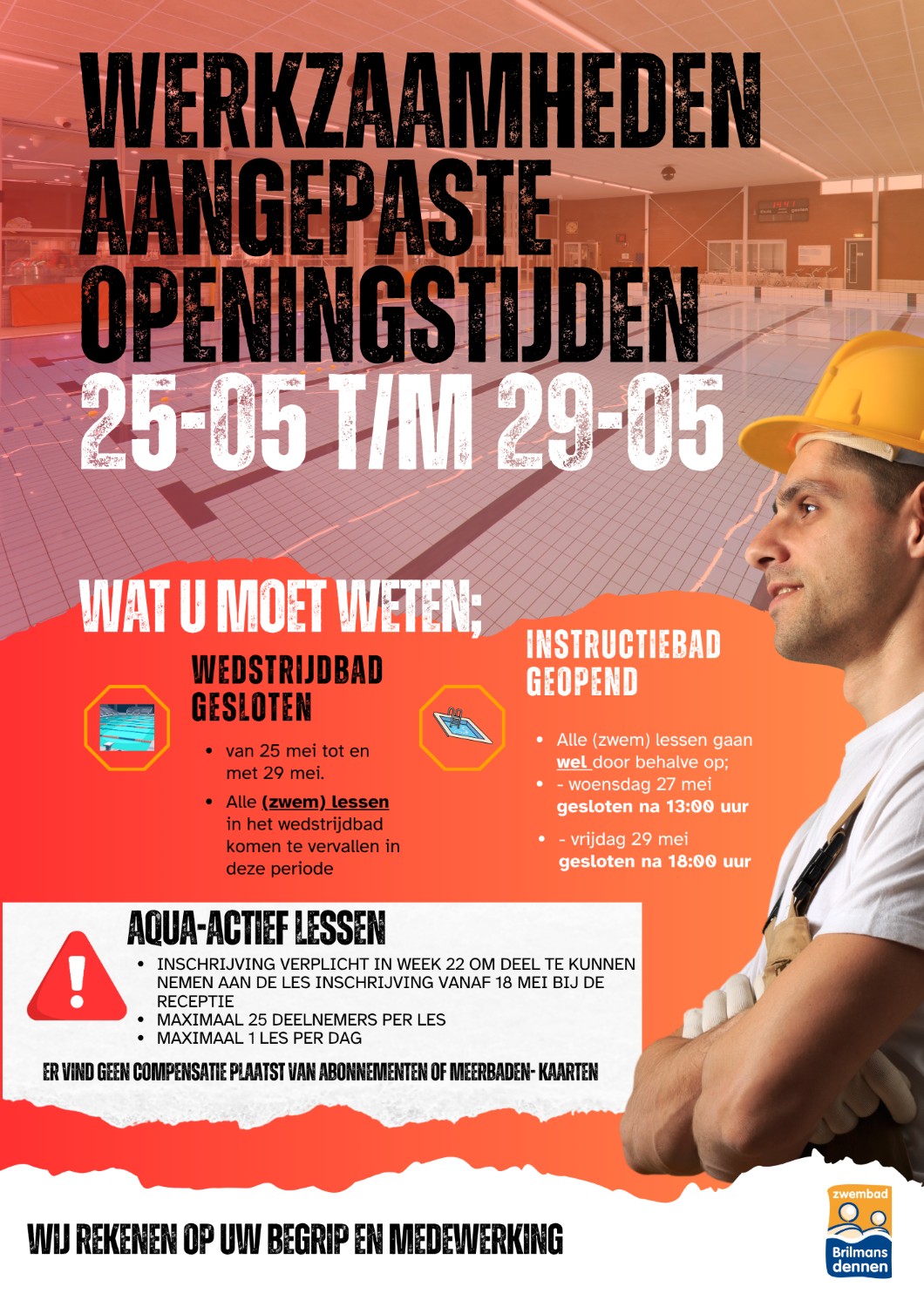 · Het wedstrijdbad is gesloten van maandag 25 mei t/m vrijdag 29 mei.