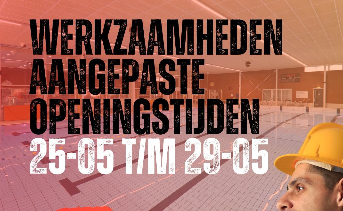 In week 22 starten de voorbereidende werkzaamheden voor het renoveren van een groot deel van onze gevels. Hierdoor gelden er tijdelijk aangepaste openingstijden. Na deze week blijft het zwembad geopend, maar kunt u wel enige hinder ervaren van de werkzaamheden.